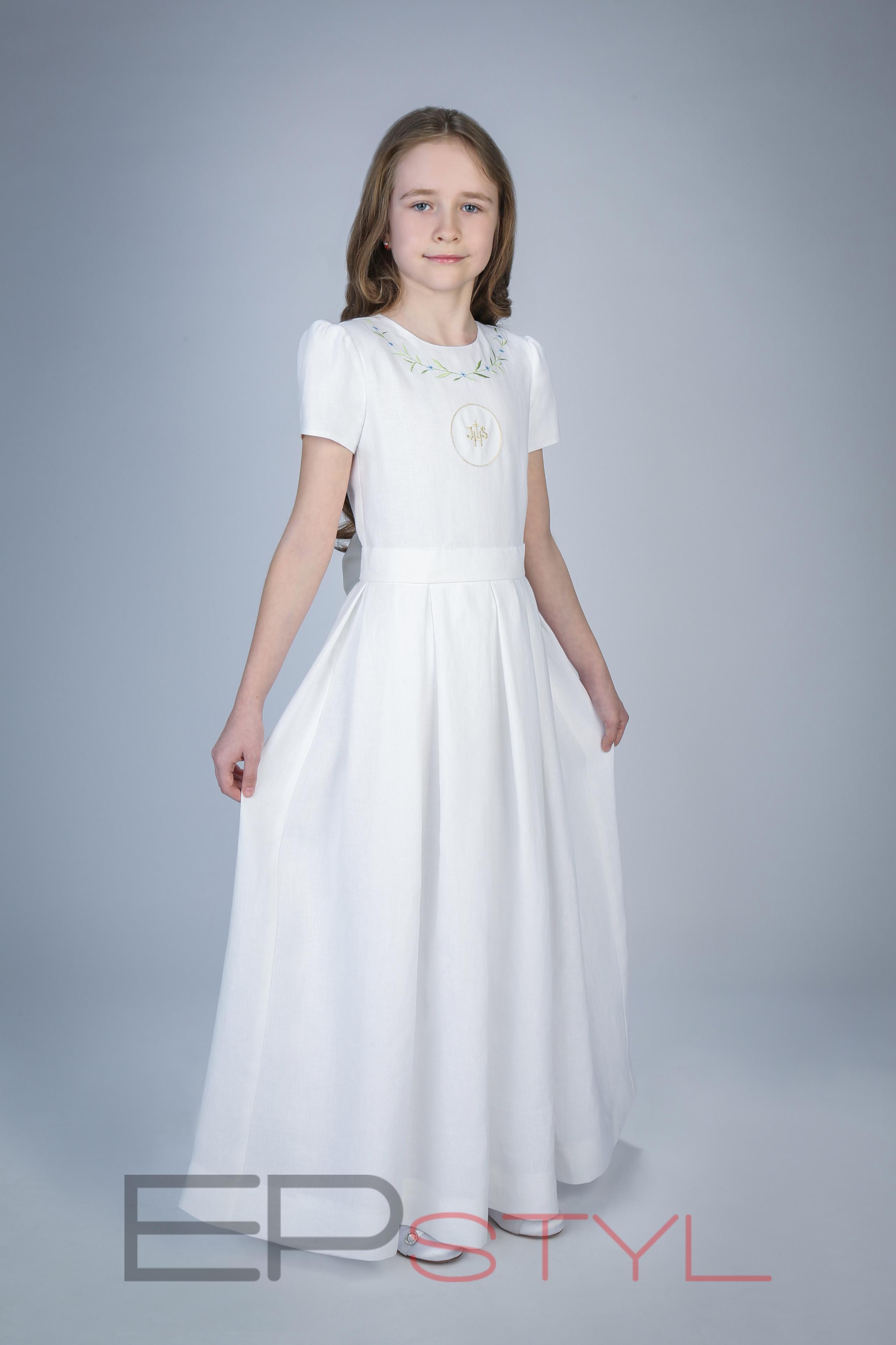 Jeśli szukasz komunijnej sukienki z naturalnych tkanin ten model jest dla Ciebie.