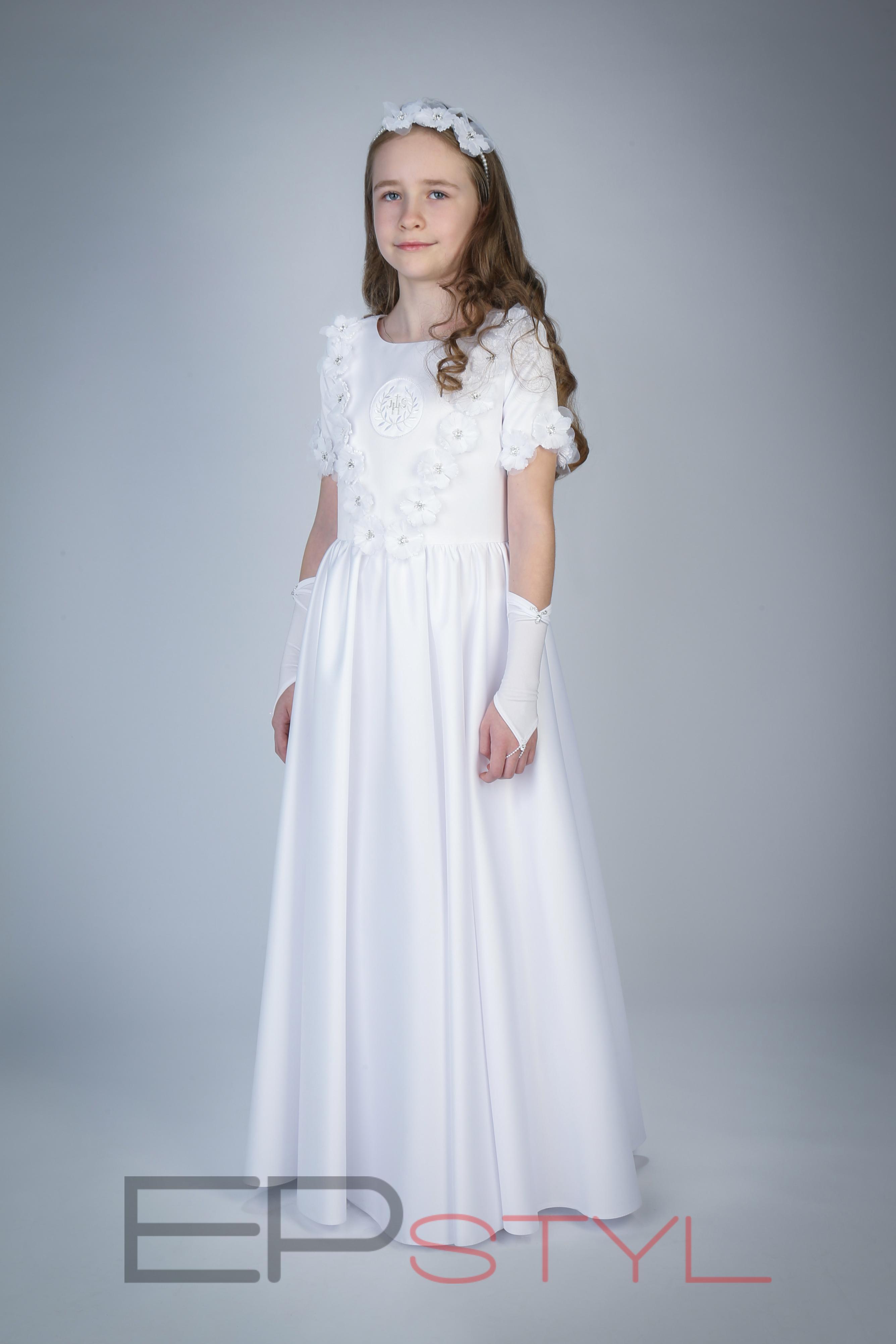 Na przodzie, rękawkach i z tyłu w pasie wyszyta kwiatami 3D.